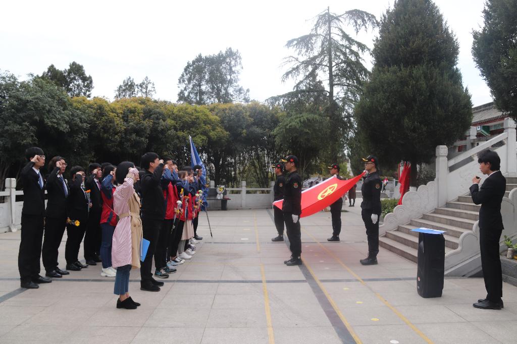 活动现场,师生在烈士纪念碑前列队集合共同唱响《中华人民共和国国歌》。全体肃立默哀,国旗护卫队成员向烈士敬献花篮,校团委书记李光梓整理花篮绶带并带领团员瞻仰纪念碑。组宣部部长何媛为全体人员上了“纪念五四运动100周年”主题微团课,带领大家重温革命、建设、改革年代先烈们的英雄事迹,坚定了同学们“听党话,跟党走”的理想信念。第十二期“青马工程”培训班学员代表王冰洁做了《青春不停步 永远跟党走》团旗下的演讲,校学生会副主席边旭辉带领全体团员面向团旗重温入团誓词。