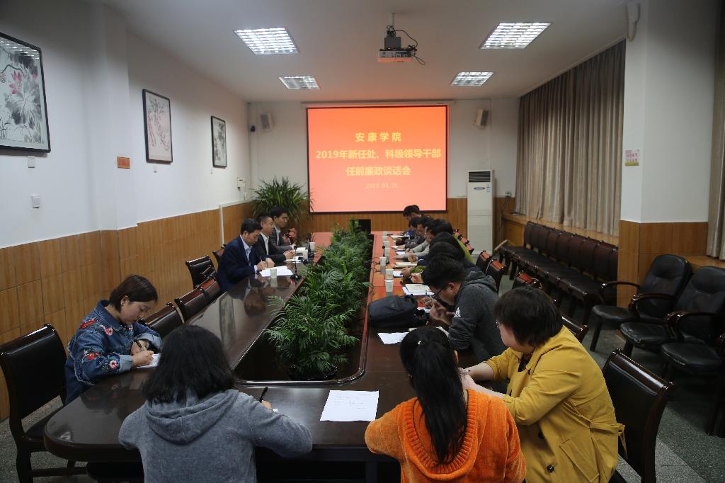 4月28日下午,学校召开新任处、科级干部廉政谈话会,党委委员、纪委书记安永强,组织部部长屈险峰,纪委副书记谢玉玺出席了谈话会,12名新任处、科级干部接受了廉政谈话教育,谈话会由谢玉玺主持。