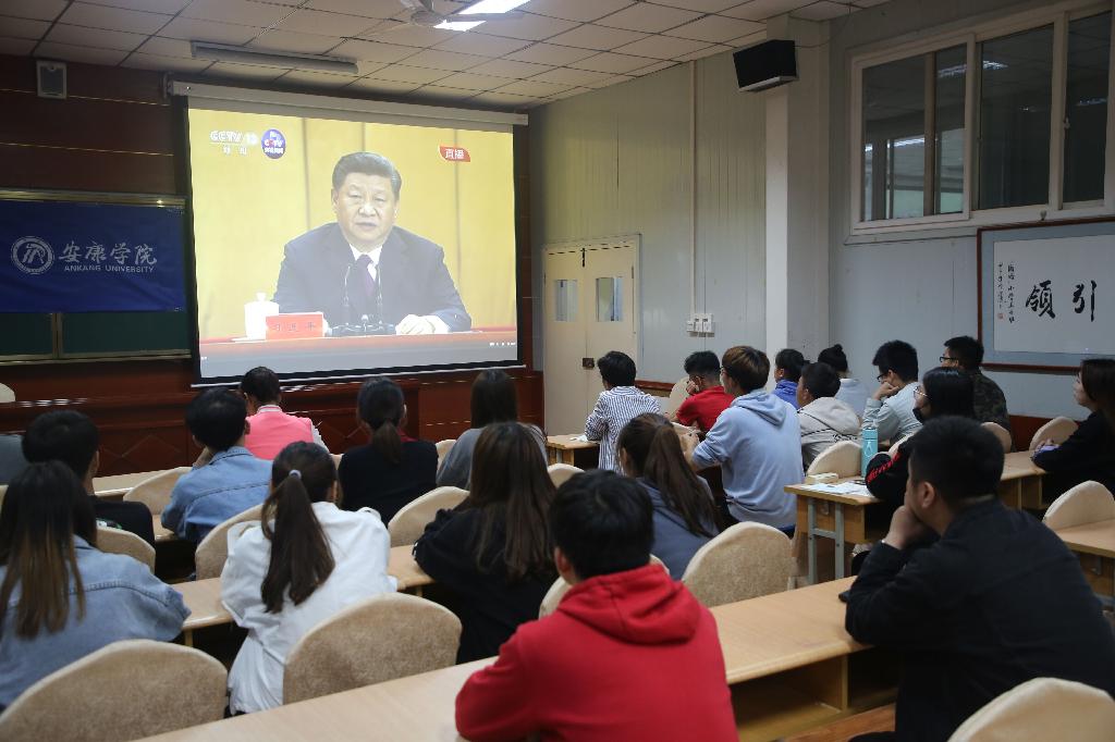 4月30日上午10:30,纪念五四运动100周年大会在人民大会堂举行,中共中央总书记、国家主席、中央军委主席习近平出席大会并发表重要讲话。我校党委书记王国良、校长丁巨涛及其他中心组成员,各二级学院党、团总支书记,青年学生代表分别在江南、江北校区三个视频会议室集中收听收看习近平同志在纪念五四运动100周年大会上的讲话实况直播。王国良对学习贯彻落实讲话精神做了安排部署。