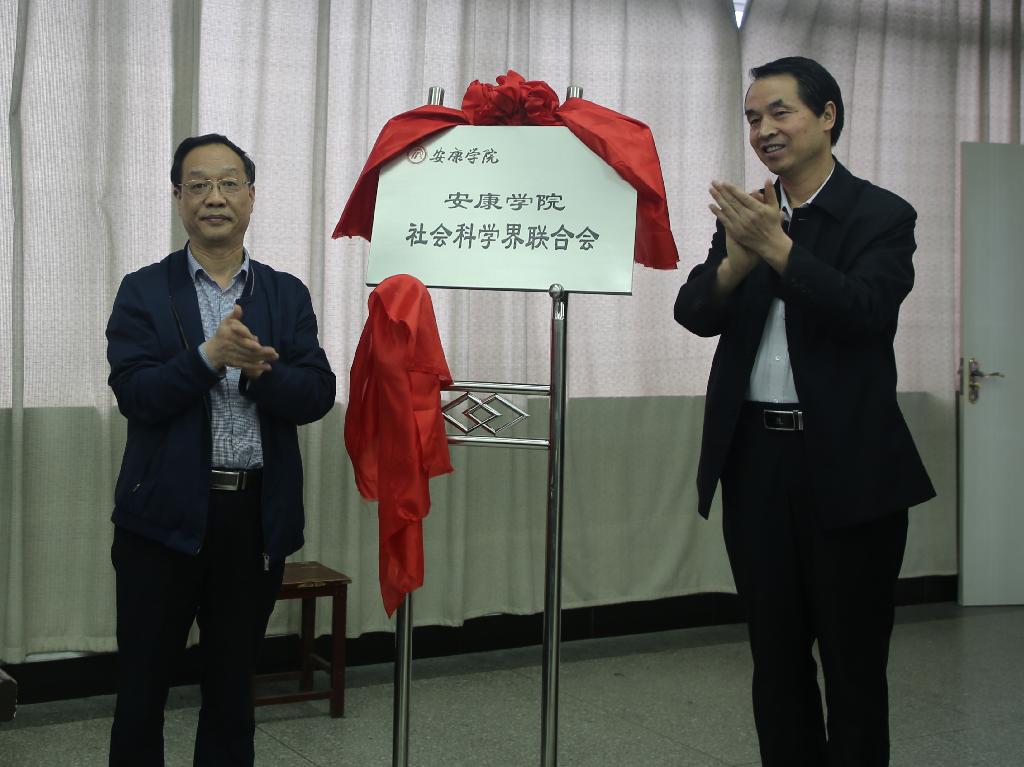 郭建树与王国良为学校社会科学界联合会揭牌。