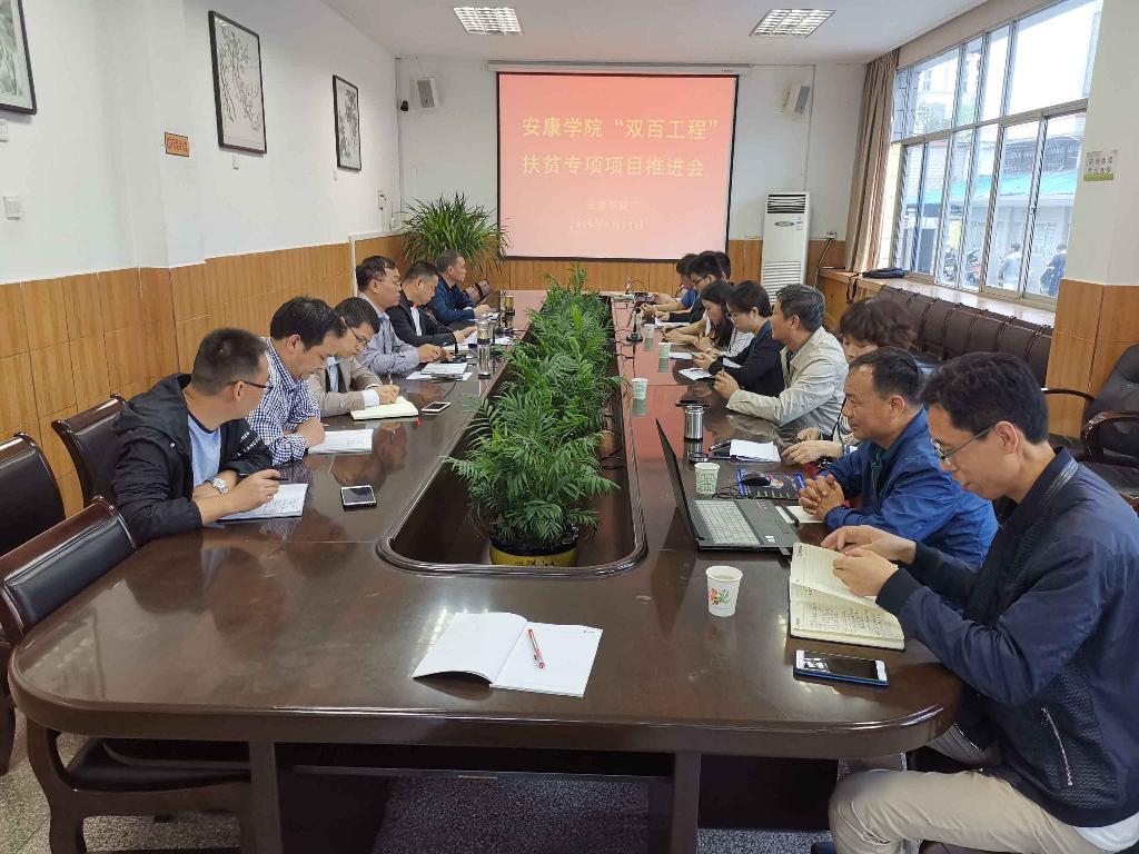 为进一步推动我校扶贫专项的研究工作,大力促进科研成果转化应用,近日,我校在江南校区第一会议室举行了“双百工程”科研项目推进会。学校纪委书记安永强、扶贫办及科研处、扶贫项目主持人参加了会议。会议由科研处副处长王刚主持。