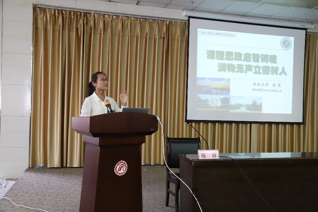 陈莉以“课程思政启智铸魂,润物无声立德树人”为主题,从教学学术视角切入,对课程思政提出的背景、课程思政的理念、思政课程与课程思政的区别等方面做了讲解,以“算法与人生”和“最后一课”的教学设计为例,为与会教师展示了专业教学中如何有效融入“思政元素”,做到润物无声、思政入心的效果。