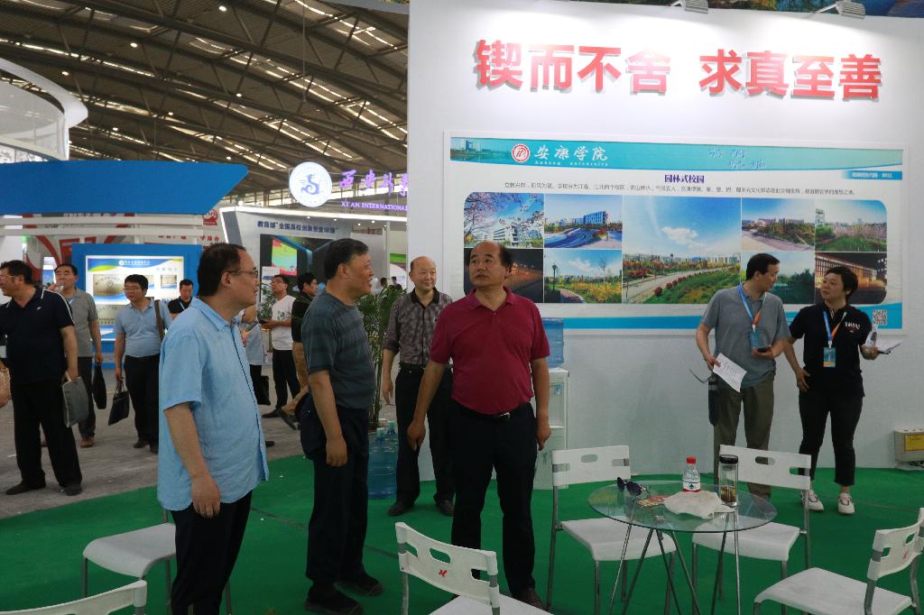 参展期间,学校校长丁巨涛、副校长钟生海前往察看指导我校布展工作,看望慰问展会工作人员和师生。陕西省委教育工委副书记李智军、陈乃霞,陕西省教育厅副厅长刘建林、陕西省政府学位委员会秘书长袁宁等领导亲临我校展区指导工作,与我校领导亲切交谈,详细了解了我校招生就业、科学研究、大学生创新创业、产业扶贫等情况,对我校展区特色亮点和办学成绩表示充分肯定。