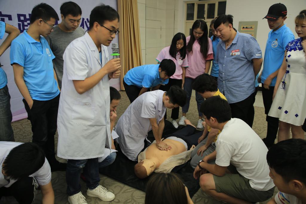 出征仪式前,校团委根据团中央《关于组织收看大学生“返家乡”社会实践活动网络访谈直播的通知》精神,组织实践团队观看了大学生“三下乡”“返家乡” 社会实践活动的基本情况及经验做法分享。同时,结合我校社会实践区域多为山区乡村的实际情况,邀请市中医医院男护士工作组为实践团队开展了题为《急救知识科普进校园》的专题培训。