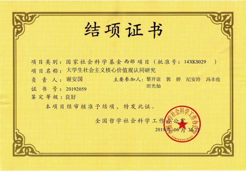 接全国哲学社会科学工作办公室通知,我校谢安国教授主持的国家社科基金项目成果以“良好”等级通过结题鉴定,顺利结项。