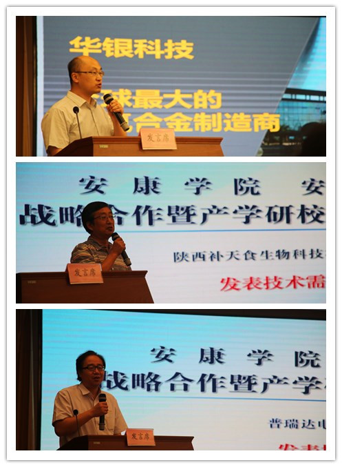 会上,我校农生学院院长杨松杰、化工学院院长金华峰、电信学院院长陈守满、经管学院院长李勇代表学校发布科技成果。陕西华银科技股份有限公司傅洪涛副总经理、陕西补天食生物科技有限公司张钊总经理、普瑞达电梯有限公司高冬青总工程师代表安康企业发表技术需求。