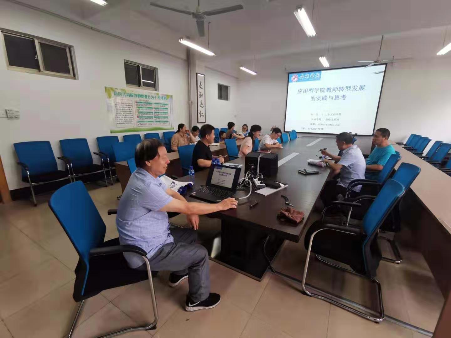 8月13日,我校数统学院赵临龙教授应山东工商学院数学与信息科学学院邀请,赴该校为教师们作了《应用院校教师转型发展的实战与思考》讲座,主要从课程建设方面和教育转型两个方面,进行了报告与交流。