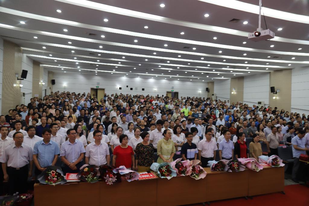 秋风送爽,丹桂飘香。9月10日下午,我校在江南校区大礼堂举行庆祝第35个教师节暨表彰大会,表彰一年来默默耕耘在教学、科研、管理和服务一线的先进典型。学校党委书记王国良,校长丁巨涛,党委副书记胡波,副校长钟生海,纪委书记安永强出席大会,并为各类荣誉称号获得者颁奖。王国良在会上作了讲话,大会由丁巨涛主持。