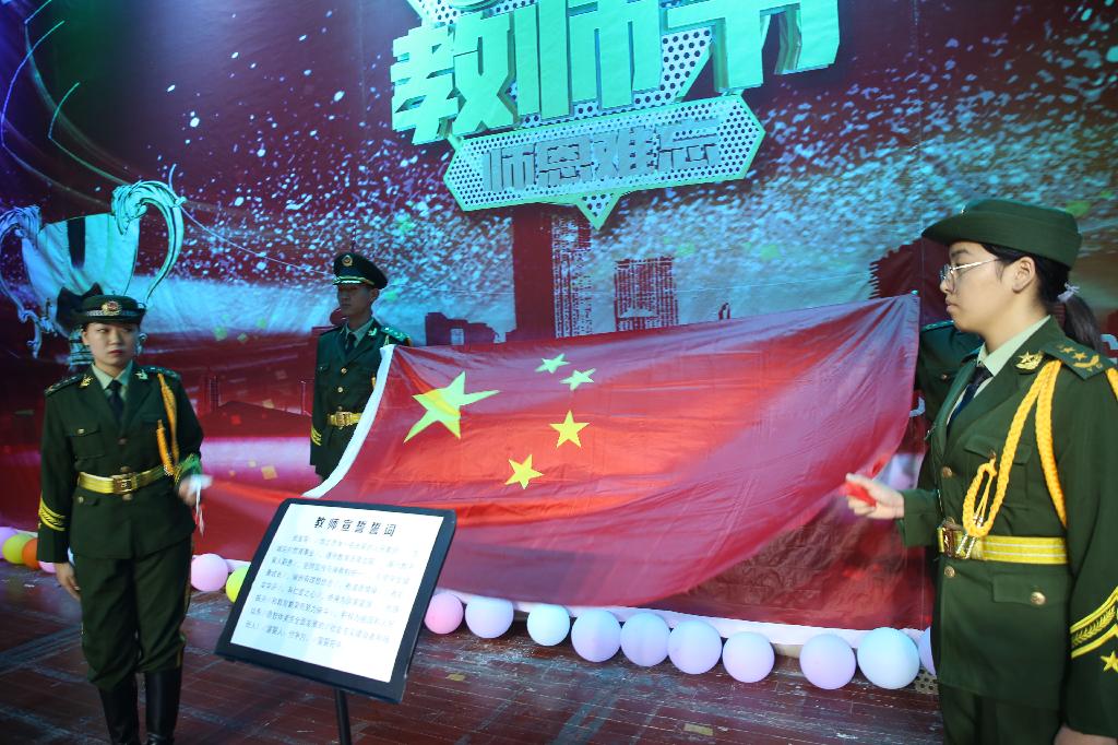 34名新入职教师在国旗下庄严宣誓:忠诚党的教育事业,做有理想信念、有道德情操、有扎实学识、有仁爱之心的好老师,为学校有特色、高品质的一流应用型本科高校建设贡献才智与力量。