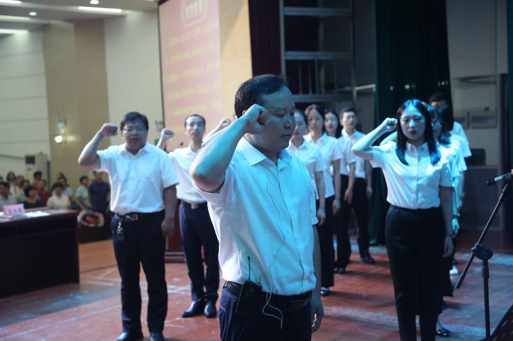 34名新入职教师在教务处副处长付争方教授的带领下庄严宣誓 |