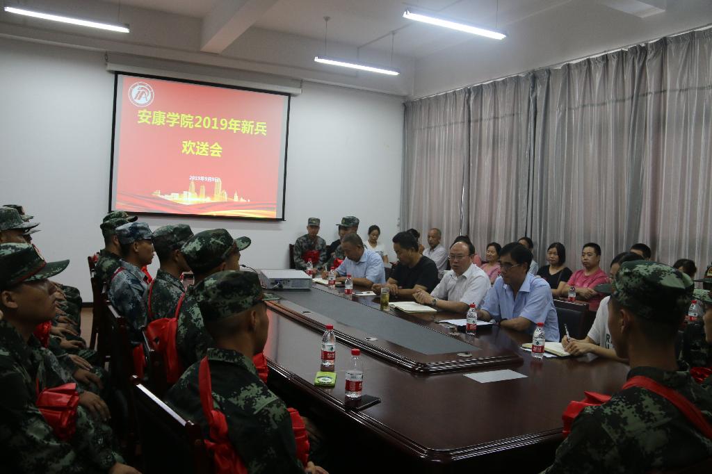 9月9日下午,我校2019年新兵入伍欢送会在陕南民间文化研究中心举行。学校党委副书记杨行玉,学生工作部(处)、武装部部长李岩,保卫处处长王开忠、武装部王瑞卫、辅导员代表王瑜、2019年25名入伍新兵以及部分家长参加了欢送会。欢送会由李岩主持。