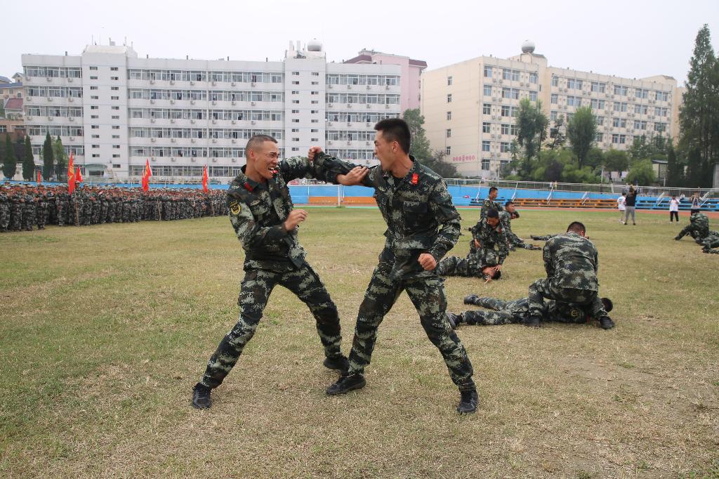 在庄严的国歌声中,大会拉开帷幕。王国良宣布2019级新生军训总结表彰大会正式开始。29个军训连队以自信的姿态和昂扬的斗志依次走过主席台进行分列式表演并接受检阅。汇演中新生们带来了队列方阵、五步拳方阵、匕首方阵等节目、教官表演了虎虎生威的擒敌综合操。他们规范的动作、整齐的步伐、响亮的口号、饱满的热情赢得了现场观众的阵阵掌声,充分展示了此次军训成果,彰显了军人的豪迈与力量。