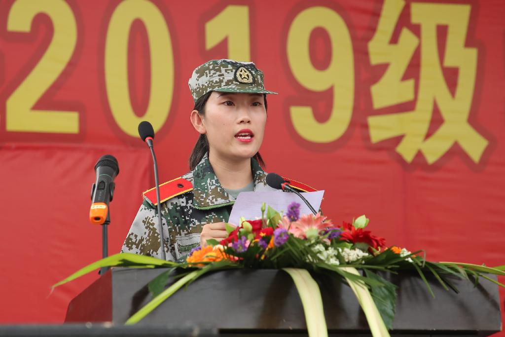 军训学生代表文传学院2019级军训学员高楠在发言中分享了军训中的感悟和收获,向风雨同行的教官表达了深深的谢意。她表示,军训是体验人生、战胜自我、磨炼意志的最佳契机。在未来的学习生活中,要用军人的标准严格要求自己,孕育远大理想,培养高尚情操,养成良好习惯,踏实学习、方正做人、脚踏实地、展望未来、勇往直前!