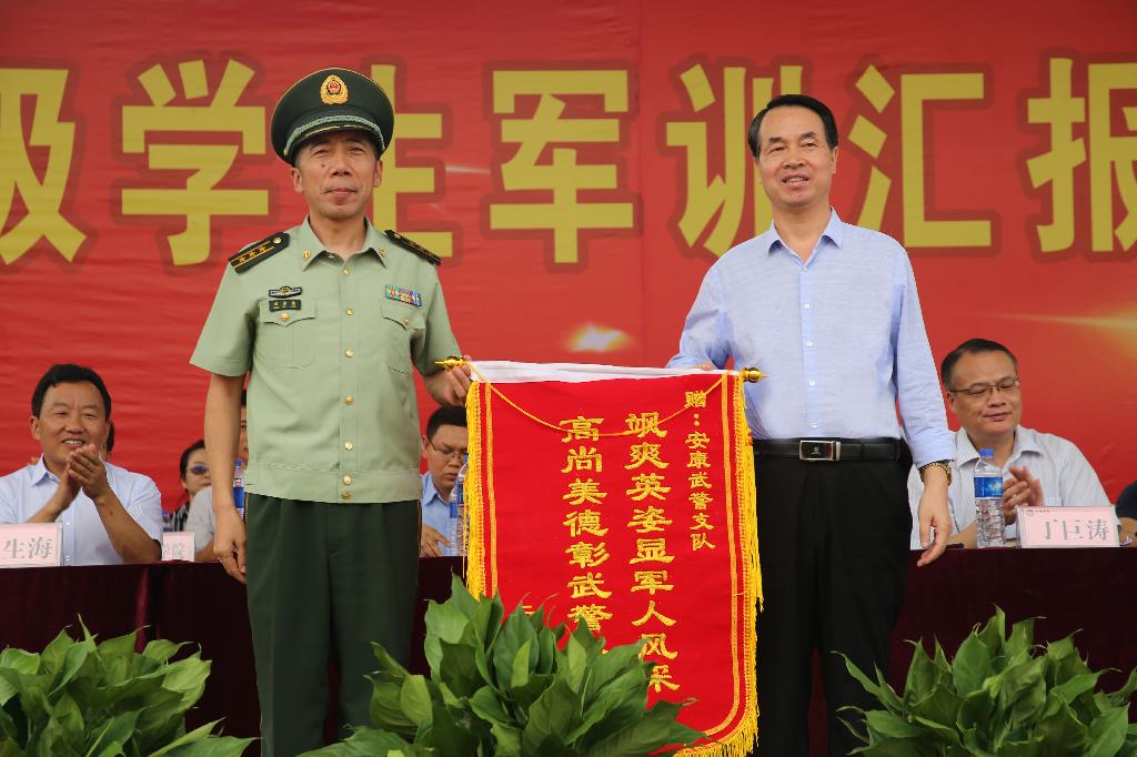 他表示,军训旅全体学员进行了精彩的分列式和方队汇报表演,纪律严明、队列整齐、动作准确、口号洪亮,无论从身体素质的锻炼上,还是从精神的锤炼上,都表明这次军训达到了预期目的。他代表学校,向安康市武警支队官兵们表示衷心的感谢!向参加军训学生表示亲切的慰问!向为军训工作付出辛勤劳动的校内有关部门和同志们表示衷心的感谢!向在军训中涌现出来的先进集体和先进个人表示热烈的祝贺!