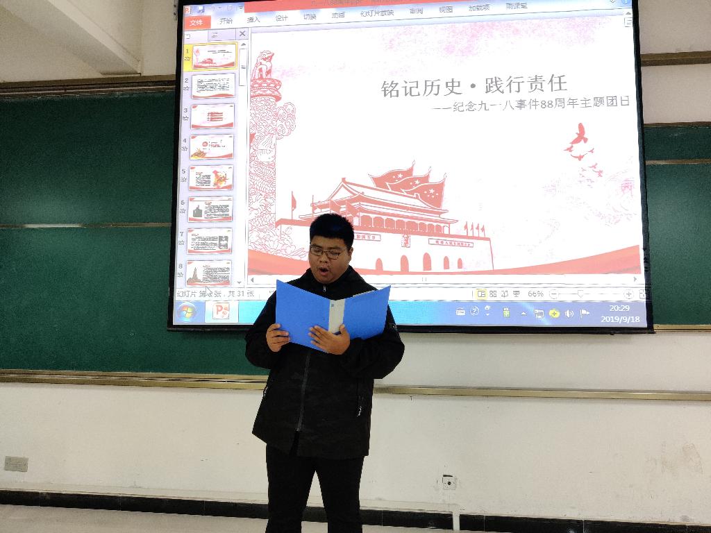 主题团日活动开通了线上宣传和线下宣传两个通道,教育引导学生铭记历史,珍爱和平,畅谈感悟。各二级学院团总支分别以“勿忘国殇,吾辈自强”“铭记历史 践行责任”“铭记历史,展望未来”等为主题开展纪念“9.18”事变88周年主题团日活动,通过观看纪录片、历史图片、团总支书记讲团课、畅谈理想和责任担当等方式带领学生共同回顾了“9.18”事件的历史经过,中华民族遭受的屈辱和苦难,以及中华优秀儿女英勇抗战的光辉事迹。一张张图片、一件件实物,一段段震撼人心的视频,让大家对“9.18”事变的历史背景、事件经过和历史影响有了更清晰的认识。