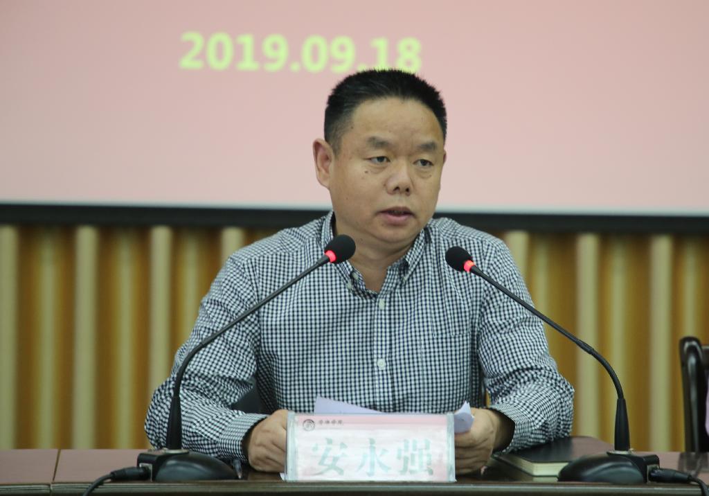 9月18日下午,学校召开了二级党组织落实全面从严治党主体责任情况研判工作动员会,党委委员、纪委书记安永强,组织部部长屈险峰,宣传部部长鲁延安,纪委副书记、纪委办主任谢玉玺及经管学院、马克思主义学院教职工等近80人参加了动员会,会议由谢玉玺主持。