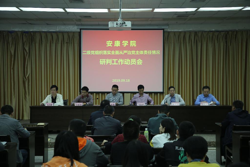 会上,屈险峰宣读了《中共安康学院委员会关于对二级党组织落实全面从严治党主体责任情况开展研判的工作方案》,马克思主义学院党总支书记冯丰收、经管学院党总支书记郑武生分别代表学院领导班子做了表态发言,一致表示将积极支持、全力配合此次研判工作,并虚心接受反馈意见建议,扎实做好整改落实。
