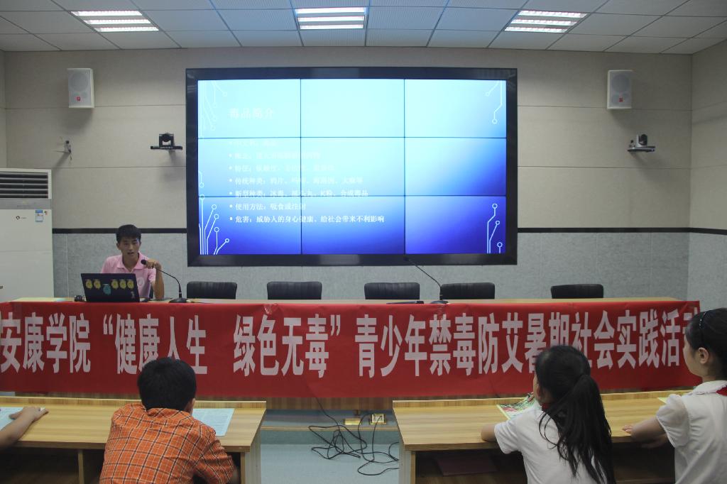 我校青年志愿者服务队赴白河县城关小学开展以“健康人生 绿色无毒”青少年禁毒知识宣讲会,青年志愿者服务队队长范紫阳同学从毒品种类、吸毒原因、毒品危害和预防毒品等四部分进行青少年禁毒知识宣讲;化工学院联合白河县星语早教中心开展“爱护环境”主题宣讲活动;体育学院赴白河狮子山社区开展健康扶贫宣讲,为当地居民开展健康知识普及健身运动项目培训。