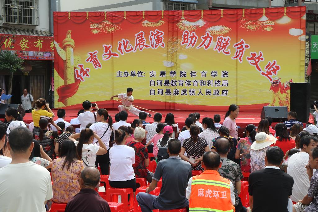 体育学院实践团队赴白河狮子山社区和麻虎镇开展体质检测、武术和健美操汇报演出等形式多样的社会实践活动;艺术学院结合专业特色,赴白河西营镇开展“文化惠民乡村行”暑期实践活动。