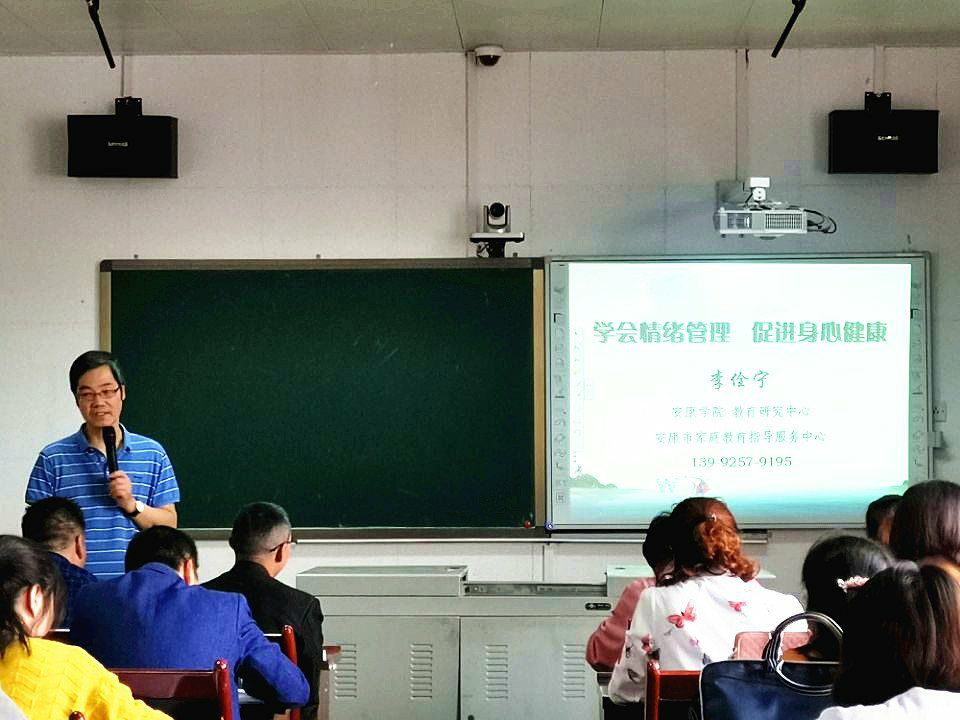 9月23日下午,我校教学督导、教育学院教师李佺宁副教授应陕西理工大学邀请,为该校承办的“国培计划2019”汉中市南郑区教师培训班做《学会情绪管理 促进身心健康》专题讲座。