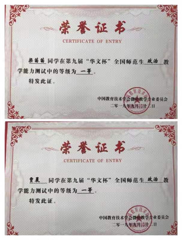 9月20--22日,第九届“华文杯”全国高校师范生教学能力测试与交流(政治)教学技能大赛在内蒙古集宁师范学院举行,来自北京师范大学、南京师范大学、华中师范大学、东北师范大学等全国78所高校的362名大学生参加了此次活动。我校马克思主义学院选派5名学生,经过教学设计评比、模拟授课、现场答辩等环节的激烈比拼,以巧妙的教学设计、娴熟的授课技能和严谨的答辩得到了评委的高度认可,最终斩获一等奖2项,二等奖4项,三等奖3项,优秀奖1项。