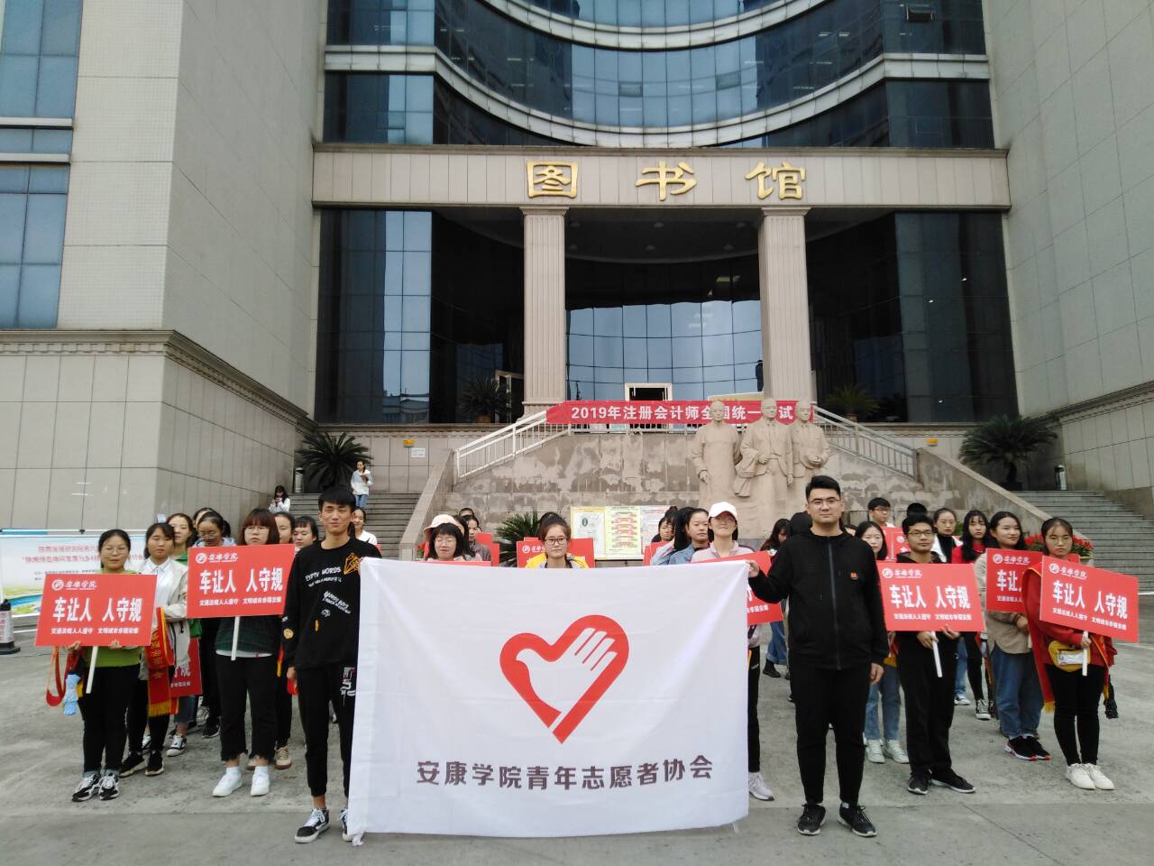 为提高公民文明交通意识和文明素质,使城市交通更加畅通有序、文明和谐,我校青年志愿者服务队于10月20日在中心城区安火路十字、市委十字、市政府十字等8 处重点十字路口开展“车让人·人守规”文明交通志愿服务活动。