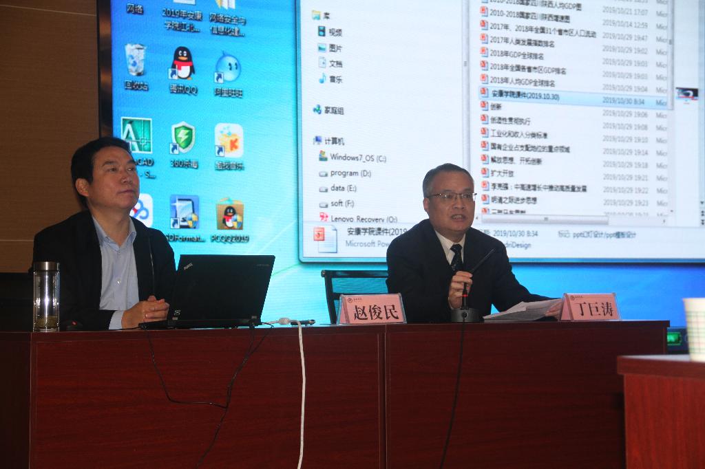 10月30日上午,安康市市长赵俊民应邀莅临我校,在江北校区图书馆报告厅为与会嘉宾和师生作了题为“对高质量发展实现路径的思考和建议——以陕西省为例”的经济形势主题报告。报告会由校长丁巨涛主持。
