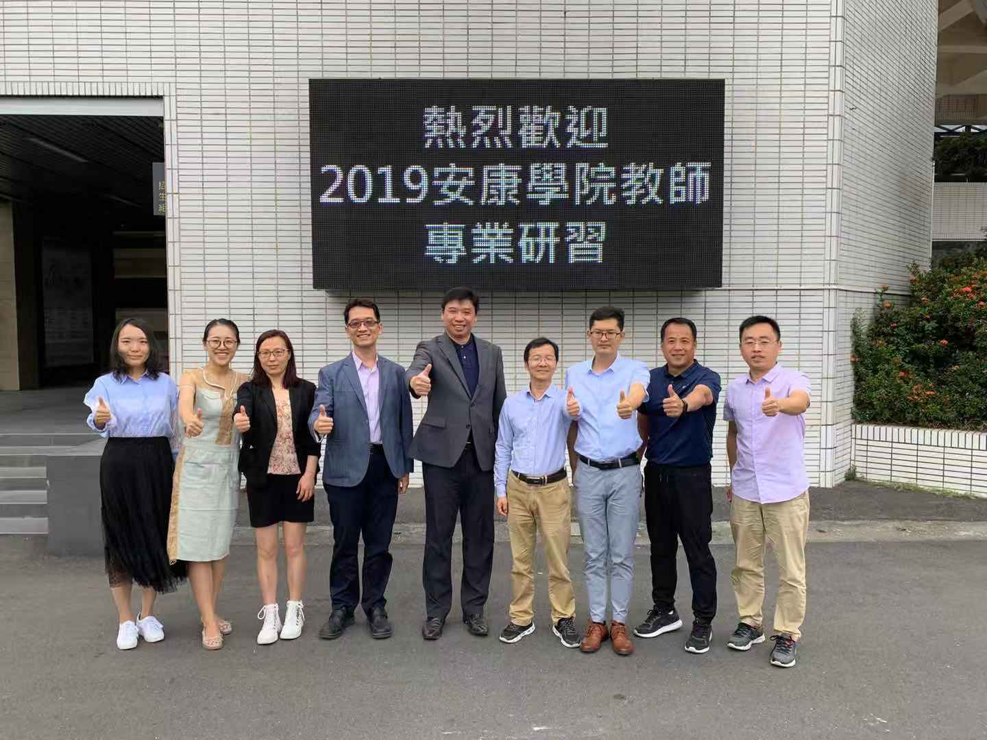 近日,我校选送的中青年教师研修团队一行7人赴台湾开始为期40天的交流学习,学校领导为赴台教师送行。台湾嘉南药理大学举行了隆重的欢迎仪式,并在行政办公楼8楼会议室召开座谈会,欢迎我校研修教师团队的到来。嘉南药理大学校长陈鸿助,副校长杜平悳、廖志祥等出席了座谈会。