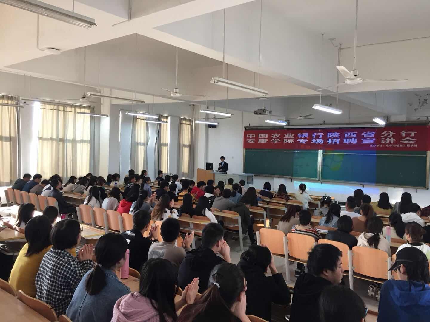 邀请行业进校宣讲。为提高毕业生就业质量,学校结合专业领域、行业特点,先后联系中国石油陕西销售公司、中国银行股份有限公司陕西省分行、中国农业银行股份有限公司陕西分行、中国人寿保险股份有限公司陕西分公司、中国水电建设第十五工程局有限公司、九冶建设集团有限公司、陕西第八建筑工程有限公司、新疆天业(集团)有限公司、陕西建工集团第十二建设公司等大型国有企业来校举办系列招聘宣活动,这些单位为国有大中型企业,单位实力强,提供岗位较好,实行统一报名招考录取,通过宣讲,为毕业生报名招考提供了精准对接指导。同时,我校联系中公教育到校举办公务员、特岗教师、事业单位等招考宣讲会,为毕业生公务招考提供精准对接指导。据统计,截至目前学校共举办行业招聘宣讲会33场。