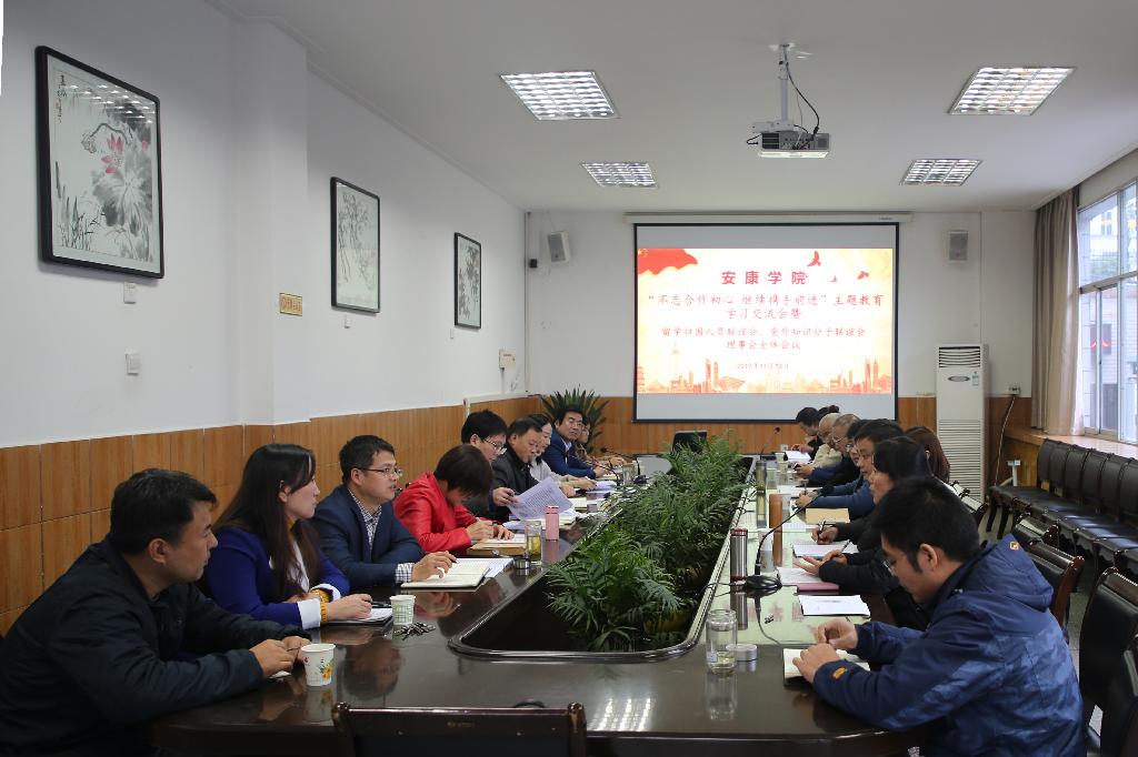 根据《中共安康学院委员会“不忘合作初心,继续携手前进”主题教育实施方案》要求,11月13日下午,我校在学校江南校区第一会议室,召开“不忘合作初心,继续携手前进”主题教育学习交流会暨留学归国人员联谊会、党外知识分子联谊会理事会全体会议。 “留联会”“知联会”全体理事,统战部全体人员及拟加入“留联会”新入职教师参加会议。党委副书记胡波出席会议并做讲话,会议由国际处处长、“留联会”会长、“知联会”会长崔晓明主持。