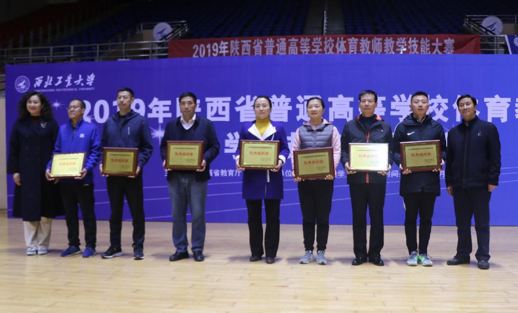 11月15日至18日,由陕西省教育厅主办、西北工业大学承办的“2019年陕西省普通高等学校体育教师教学技能大赛”在西北工业大学长安校区举行,来自全省68所高校的135名教师同场竞技、尽展风采。经过为期三天的激烈角逐,我校体育学院教师发挥出色,以突出的专业素养荣获佳绩,其中李靖荣获40岁以下组一等奖,黄志涛荣获40岁以下组三等奖,我校荣获“优秀组织奖”荣誉称号。