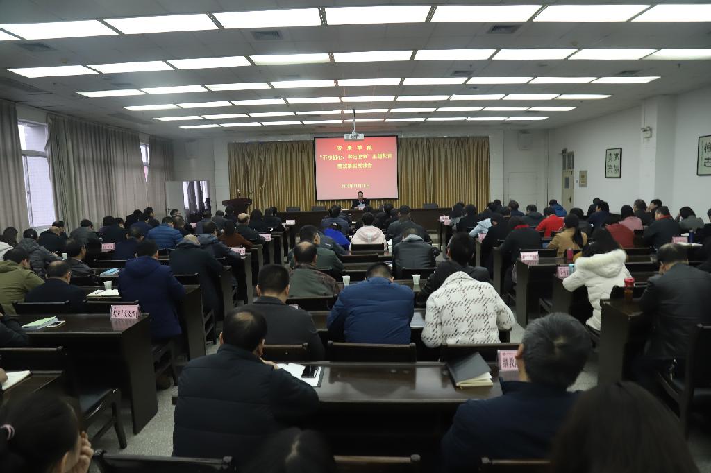 王国良从三个方面对我校主题教育整改落实情况进行了通报。一是重视“群众提”,充分征求师生意见建议;坚持“自己找”,把突出问题找准找实;聚焦“上级点”,主动认领巡视检查反馈问题,把存在问题找准找实,为整改落实奠定基础。二是学校党委切实担负起整改落实主体责任,党委书记严格履行第一责任人的职责,学校领导班子成员各负其责,按照职责狠抓分管范围内的整改落实工作,坚持突出重点、聚焦难点、以上带下、以点带面,加强督查指导,全面推进整改落实工作;各职能部门、二级学院的领导积极行动起来,抓紧整改,确保把整改工作任务落到实处。三是坚持将整改落实贯穿主题教育始终,把检视存在的问题、专项整治查摆的问题、巡视检查反馈问题列出清单,制定整改工作台帐,实行销号制度,能改的立行立改,即知即改;属于条件限制一时不能解决或因政策规定难以解决的问题,通过各种渠道给师生解释说明;属于需要长期整改解决的问题,制定措施,规划进度,建章立制,长期整改,确保件件有落实,事事见成效。目前,主题教育查摆的问题70%已得到解决,其余的问题也在持续推进整改。