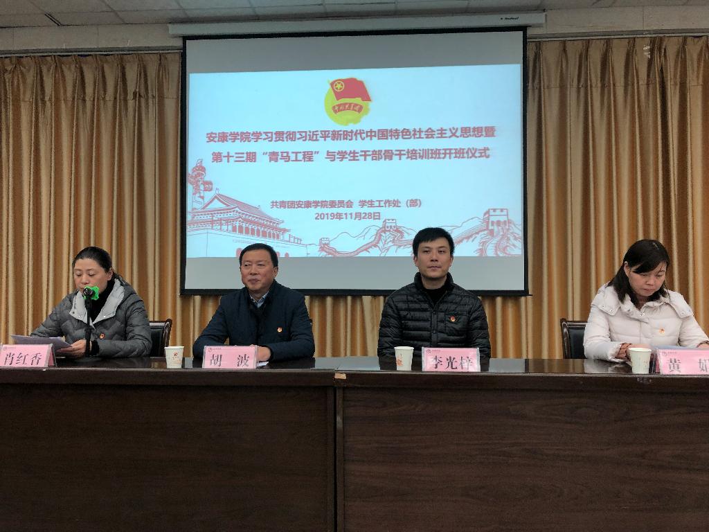 为深入学习贯彻习近平新时代中国特色社会主义思想和党的十九大精神,引导广大青年学生干部真正学懂弄通做实习近平新时代中国特色社会主义思想,提高青年学生干部的政治素养和能力素质,我校于11月28日晚在江南校区图书馆六楼报告厅举行学习贯彻习近平新时代中国特色社会主义思想暨第十三期“青马工程”与学生干部骨干培训班开班仪式。校党委副书记胡波,团委书记李光梓、副书记肖红香,学工部副部长黄娟出席开班仪式。仪式由肖红香主持。