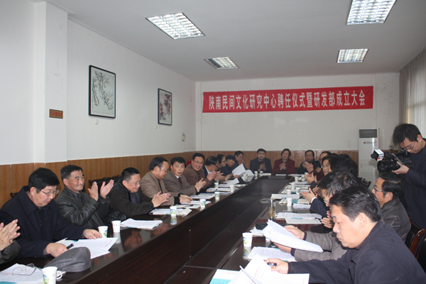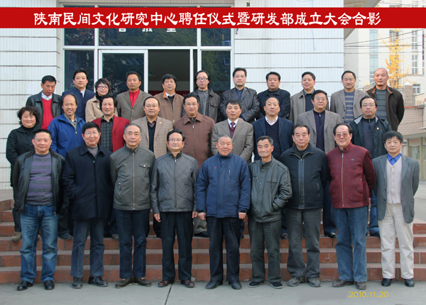 2010年11月20日陕南民间文化研究中心在安康学院大会议室成功召开了学术队伍聘任仪式暨文化产品研发部成立大会。这次大会的成功召开,标志着陕南民间文化研究中心的研究队伍进一步壮大,研究方向进一步凝练,并且将尝试把文化研究成果转化为文化产品。