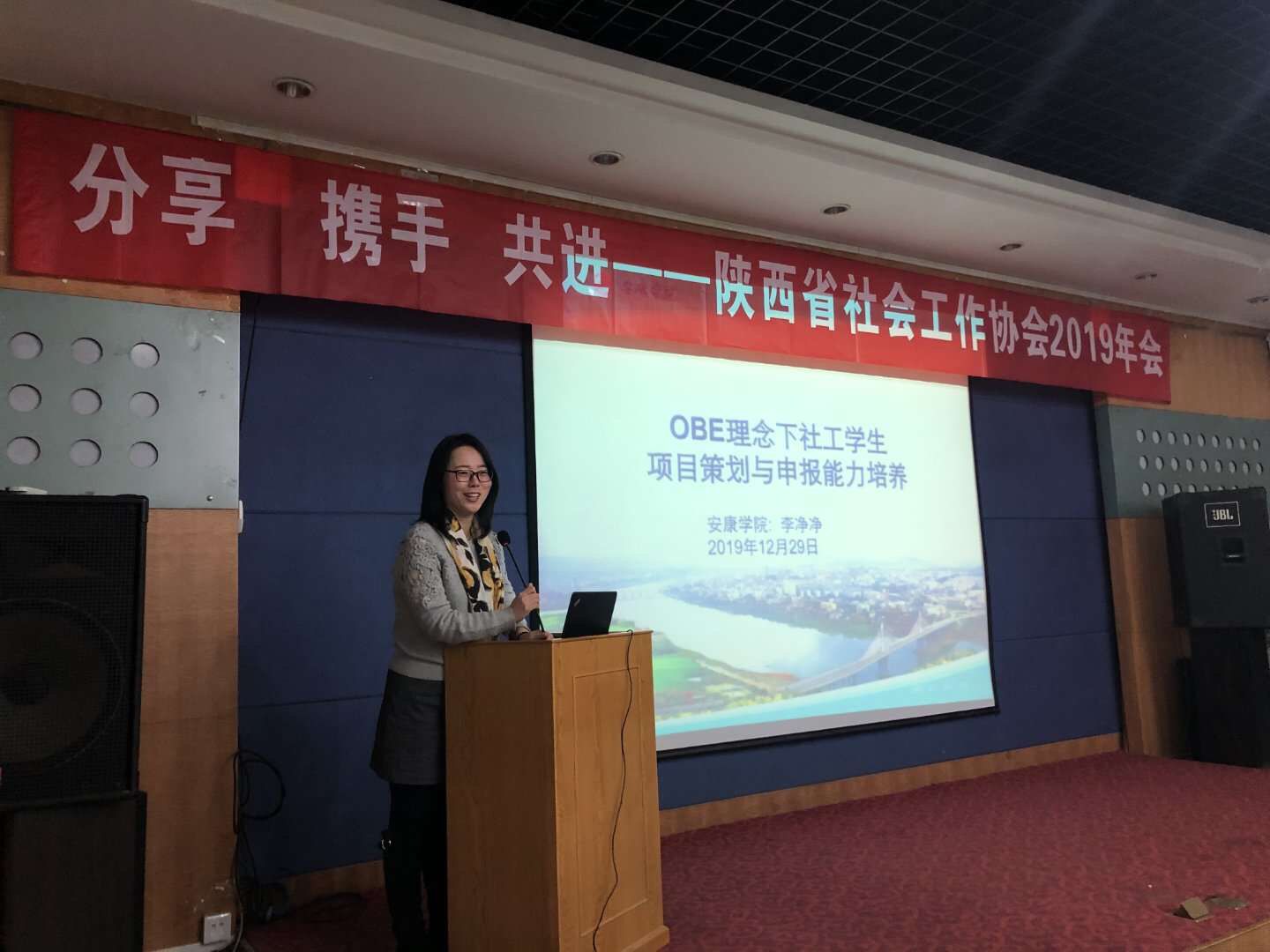 2019年12月29日,陕西省社会工作协会召开了“分享 携手 共进 陕西省社会工作协会2019年会”,我校社会工作专业系主任李净净应邀在年会上做“OBE理念下社工学生项目策划与申报能力培养”主题分享。