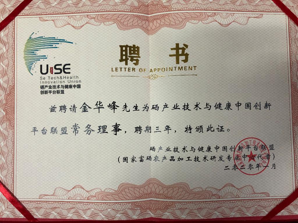 1月11日,由武汉轻工业大学承办的“国家硒产业技术与健康中国创新平台联盟”成立大会暨第一届会员代表大会在武汉举行,陕西省富硒食品质量监督检验中心选派我校化工学院教师廖彪、张继东两位代表出席会议。会上,我校化工学院被聘为常务理事单位,金华峰院长被聘为硒产业技术与健康中国创新平台联盟常务理事。