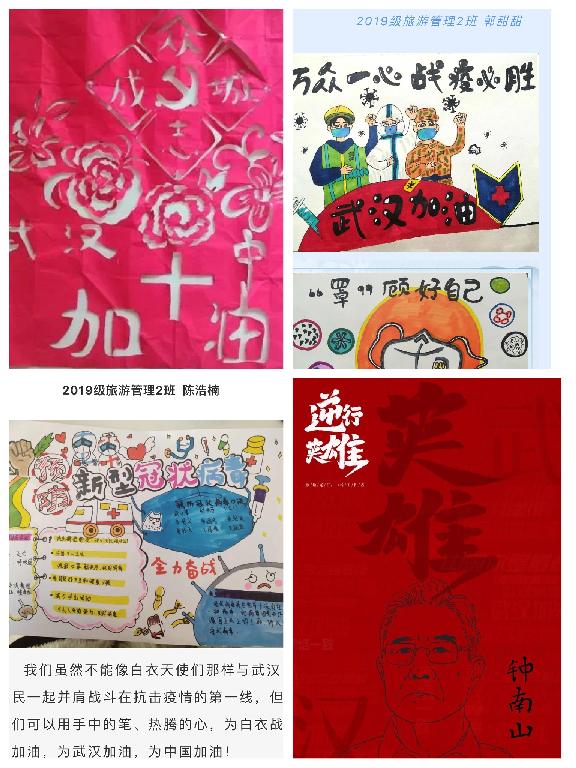 旅环学院也充分发挥学院融媒体平台建设的优势,在抗击疫情的全民战争中,营造同心战“疫”的浓厚氛围,主动占领网络思政主阵地,积极探索利用融媒体平台强化师生的爱国主义情怀,增强战疫必胜的自信心,正确引导舆情走向是战“疫”胜利的重要保障。一是通过学院的“两微一端”开展多平台、多视角、立体化、有温度的系列报道,及时宣传播报中省决策部署,推送学校、学院专题活动及文件要求。强化纪律约束、明确正确导向,引导师生遵守相关纪律要求,不提前返校,不信谣、不传谣。二是策划防疫专题栏目,积极宣传战“疫”知识。推出防控科普知识专题,开展新冠肺炎等传染病防控宣传教育,对个人如何防护、公众如何预防进行讲解,帮助师生提高防范意识、了解防治知识。宣传学校的“心理疏导热线”,积极拓展心理宣传平台,关注师生心理健康,向师生普及心理知识,提供“一对一”心理疏导链接服务。策划学校十三个院系“守望相助、共克时艰”主题推文,坚定战疫必胜的信心和决心,传递正能量,获得了院系间积极互动,提升了凝聚力。三是开展“众志成城战疫情,时代新人在行动”防控疫情线上主题活动。号召全体同学动脑、动手、动心,以多种形式载体参与活动。活动中通过作品征集和发布,及时发现和推介疫情防控中的典型人物、感人事迹,营造疫情防控的良好氛围。活动开展以来,获得音视频、图片、诗歌、散文、书法等作品上百件,并第一时间通过两微平台宣传推送,既舒缓了学生“宅”家心态又增强了学生对爱国情怀、责任担当的理解和认识,收效显著。