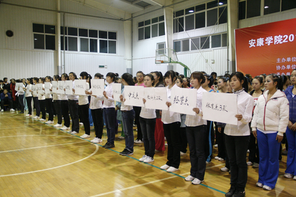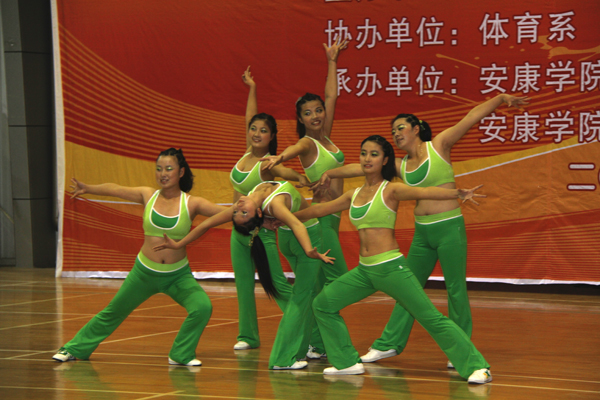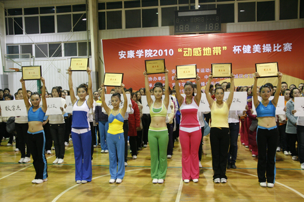 11月30日晚7点,由安康学院体育运动委员会主办,体育系、团委和中国移动安康城区分公司协办,健美操俱乐部、体育系学生分会承办的安康学院2010“动感地带”杯健美操比赛在体育馆举行。各院系共派出16支代表队130余人参加了比赛。比赛裁判由体育系教师担任。教务处处长单福东教授致开幕词,学院团委书记鲁延安宣布比赛开始。学院体育运动委员会成员、各院系党总支书记和部分教师参加了开、闭幕式并观看了比赛。比赛开、闭幕式由体育系副主任许宝林主持。
