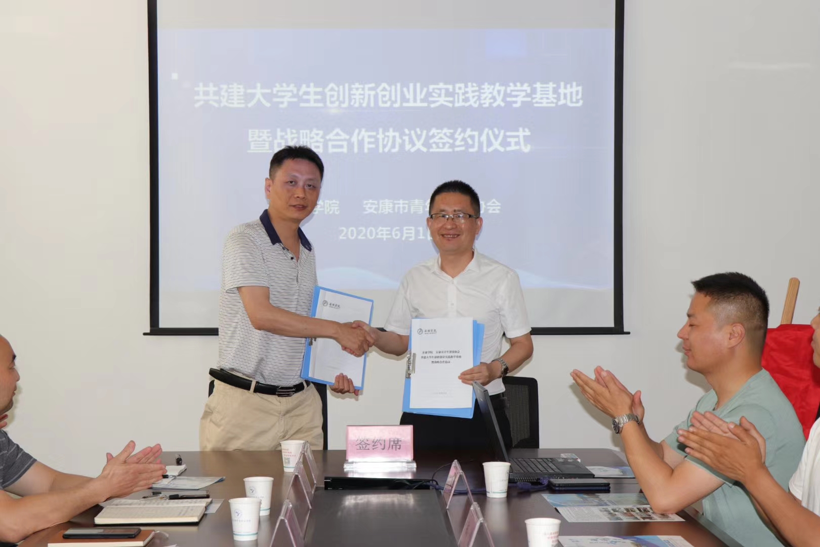 6月1日下午,由经管学院牵头组织的安康学院与安康市青年创业协会共建大学生创新创业实践教学基地挂牌暨战略合作协议签约仪式在青创国家级众创空间举行。学校教务处、招就处、经管学院等相关人员参加了签约和揭牌仪式。