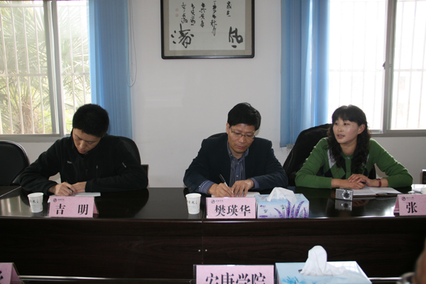 12月9日下午,陕西省外国专家局专家管理处处长樊瑛华带领省外专局、省外事办相关人员,在我院第二会议室对安康市聘请外国专家资格单位进行年检。之前陈刚副院长在接待室亲切接见了樊处长一行,双方就外教聘任、管理,引进外国专家,招收留学生等方面的问题充分交换了意见,达成了共识。