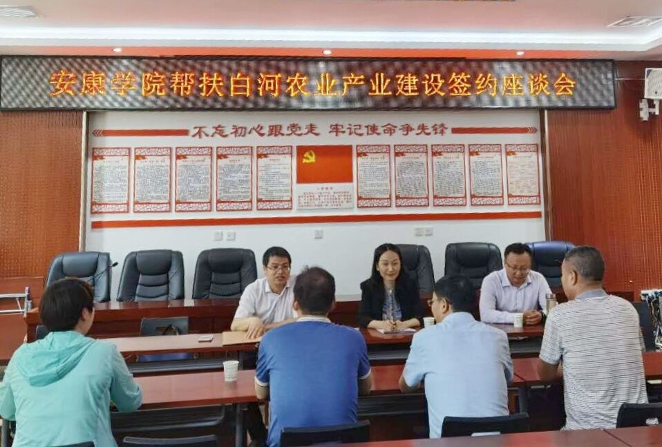 在白河县林业局,林业科技服务中心主任禹世斌主持召开了座谈会。禹世斌对我校积极开展项目合作表示欢迎,并简要介绍签约两个企业的基本情况,对我校以科技立项帮扶企业解决木瓜产业深加工、核桃种植的田间管理养护等问题这一举措给予了高度赞扬。在白河县农业农村局,总农艺师金剑组织召开了“安康学院帮扶白河农业产业建设签约座谈会”,金剑对我校主动赴白河县林业局进行项目合作表示衷心感谢,并简要介绍了签订项目协议的四家企业情况,希望有更多的高校科技工作者走进企业,让科研成果扎根田间地头,帮助企业解决实际问题,助推脱贫攻坚。