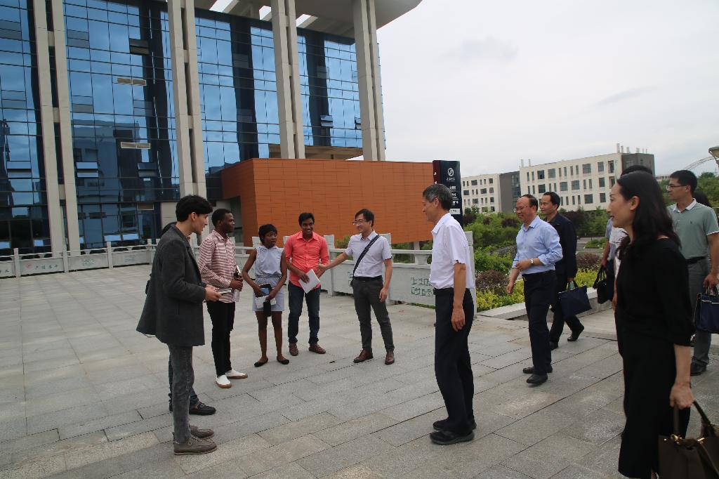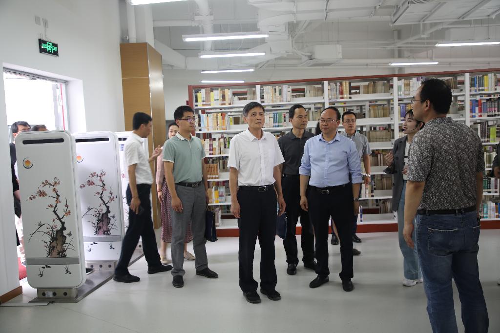 曹辉一行首先实地考察了我校江北校区,参观了江北校区图书馆,随后在江北校区逸夫科技楼会议室举行了座谈会,会议由杨行玉主持。