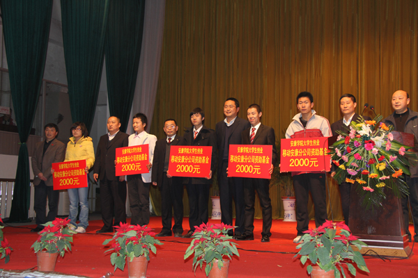 胡鸿晓在致辞中讲到,创业是大学生提升自身素质、实现梦想的大舞台,在我院积极推进大学生创业的工作中,安康市人力资源和社会保障局、中国移动安康分公司给予了大力支持。中国移动安康分公司拿出10万元资助我院大学生创业实践项目,为大学生创业铺设绿色通道。希望同学们在大学阶段学会边学习、边思考、边实践、边探索,有更多的大学生关心创业、支持创业、参与创业。刘应祥在讲话中表示将为我院大学生创业提供政策指导、咨询培训、信贷支持等服务。启动仪式上,胡鸿晓、刘应祥、王保、沈怀慈、党军为我院首批大学生创业实践者薛巨浪(艺术系)、陈家宝(政史系)、张艳青(体育系)、冯伟(农生院)、吴小军(电信系)颁发了创业实践项目资助基金。