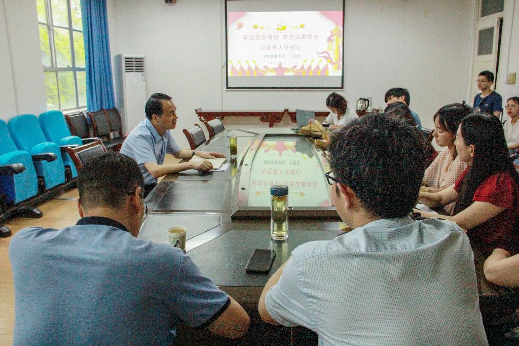 7月1日下午,学校党委书记王国良在2307会议室为文传学院教工第一、第二党支部讲授题为《牢记党员身份 为党育人守初心》的党课。