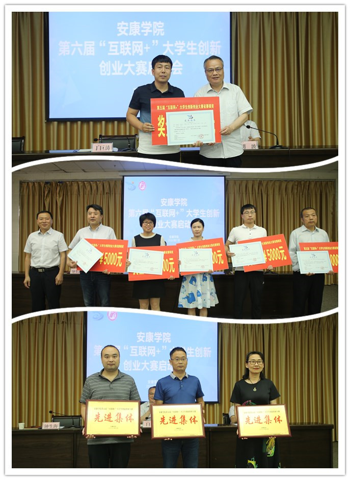 会议对第五届“互联网+”大赛校级先进集体及省级获奖团队指导教师进行了表彰。