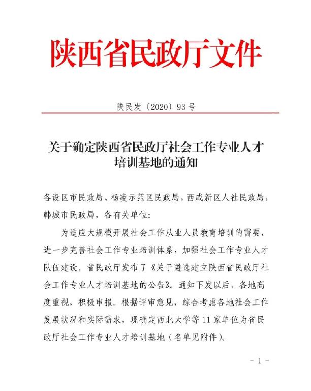 近日,从陕西省民政厅获悉,我校申报的陕西省社会工作人才培训基地正式获批,成为全省11个获批单位之一。