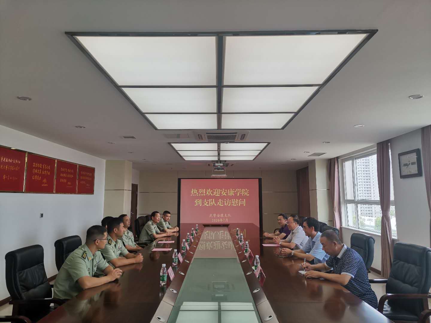 “八一”建军节来临之际,校党委副书记杨行玉一行前往武警安康支队驻地进行慰问,受到武警支队支队长赵英佶、政委杜涛等领导的欢迎,支队相关领导出席活动。