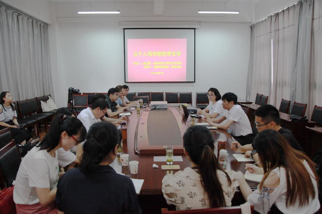 8月1日上午,陕西师范大学文学院教授、博士生导师裴亚莉与我校文传学院教授、著名作家李春平在陕南民间文化研究中心进行了一场精彩的文学对话。对话会由文传学院副院长朱云主持,文传学院文艺学、比较文学、中国现当代文学方向教师参加了对话会。