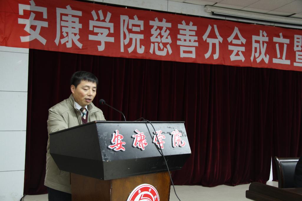 胡鸿晓在讲话中对安康市慈善协会表示感谢,对安康学院慈善分会成立表示热烈祝贺!胡鸿晓指出,大学生是国家的未来,民族的希望,肩负着承前启后、继往开来、实现中华民族伟大复兴的历史使命。大学生思想道德素养和科学文化素质如何,直接关系到国家的命运和前途。因此,慈善分会的成立为我院学生德育教育搭建了一个良好的平台,希望慈善分会大力开展慈善志愿者活动,并通过慈善志愿者活动,倡导“奉献、友爱、互助、进步”的志愿者精神,培养学生既具有乐善好施、扶贫济困、守望相助、富有爱心的传统美德,又具有崇高的理想,坚定的信念、高尚的情操、优秀的品德的人文素质。同时,号召全体慈善分会成员真正参与慈善志愿这项既是“助人”,亦是“自助”,既是“乐人”,同时也“乐己”的活动中来,在帮助他人,服务社会的同时,使自身精神得到升华,灵魂得到净化。