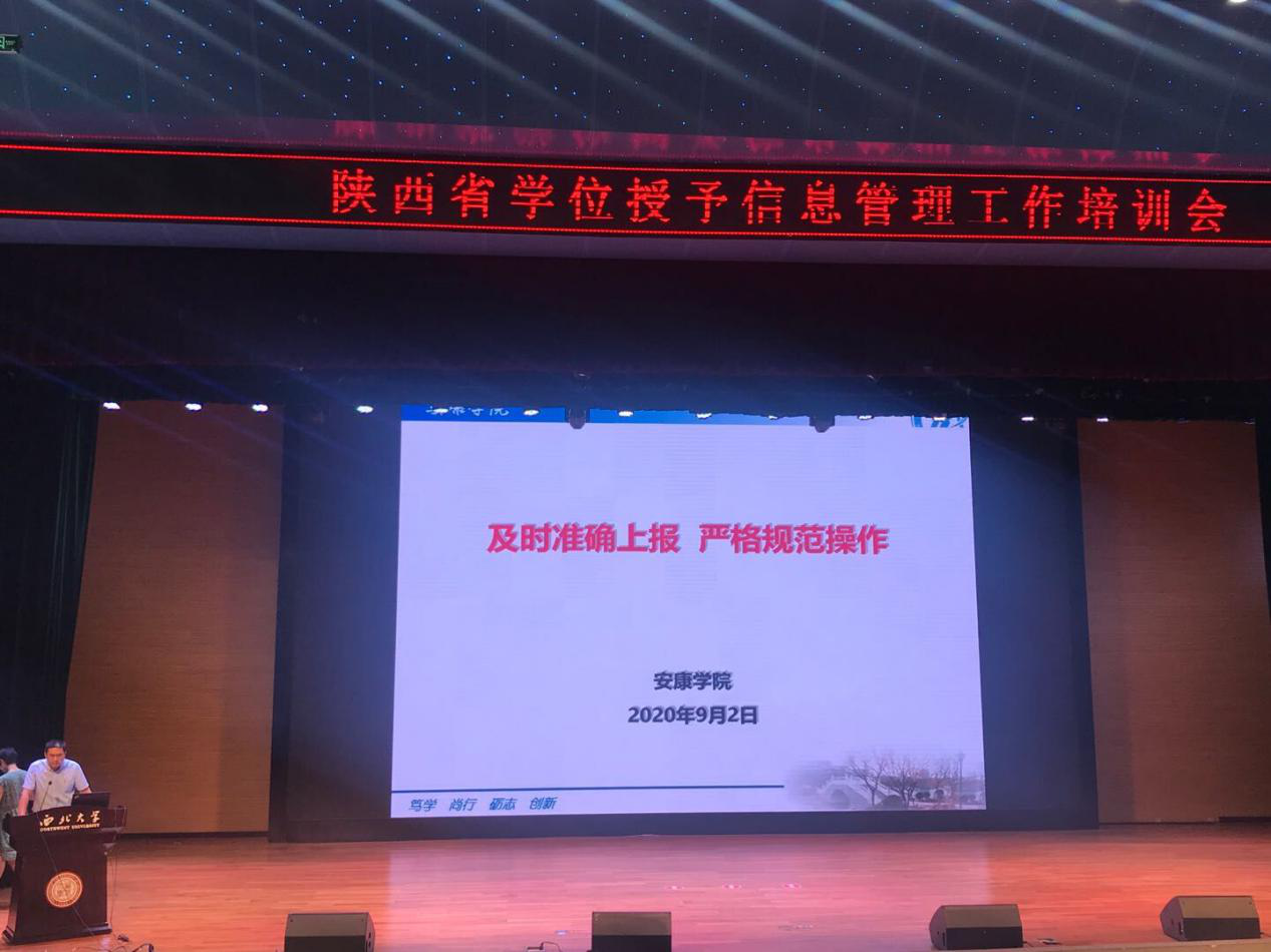 西北大学副校长赖绍聪致辞,西安交通大学、西安建筑科技大学、西北大学和安康学院4所高校代表作了大会交流发言。我校教务处副处长陈国杰代表学校作了《及时准确上报 严格规范操作》的交流发言,从及时安排采集信息、准确填报采集信息、完整上报采集信息、规范操作上报流程四个方面分别介绍了我校在学位报送信息工作中的经验与做法。